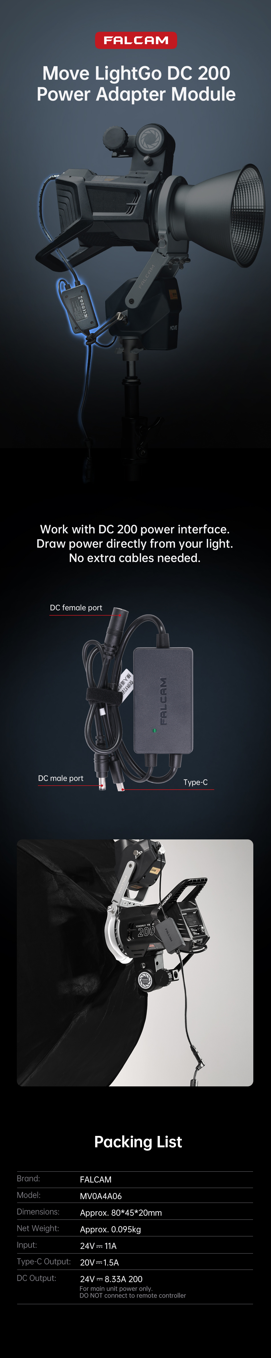 Falcam Move LightGo DC 200 Power Adapter Module