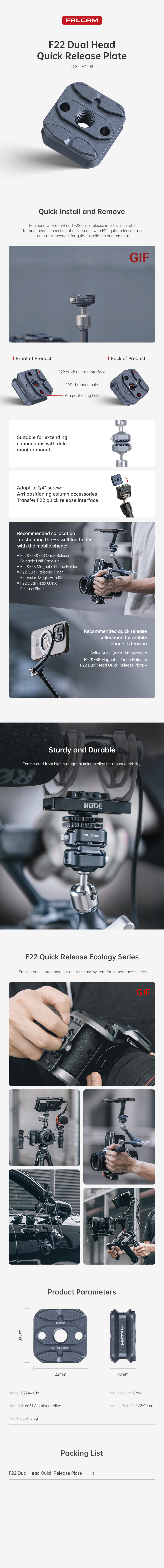 Falcam F22 Dual Head Quick Release Plate